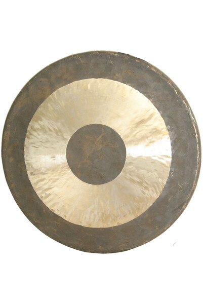 The Chao Gong, otherwise known as a tam-tam, is one of the most familiar looking Chinese gongs. The chao gong differs in shape from the wind gong in that it has a rim around the outside edge. It also has a very distinctive "target" appearance. It is made of a bronze alloy which is roughly 80% copper and 20% tin, and the crafting process is a mixture of hand hammering and working the bronze on a lathe while carefully heating and cooling the metal. On the chao gong, the center spot and outside rim retain the black copper oxide that forms when the gong is made. On the rest of the gong this coating is removed and the surface is polished. Chao gongs are available in a range of sizes, with each size having its own distinct full sound. Smaller sizes have a rich but higher sound while the larger sizes are deeper and ring with more power and sustain.