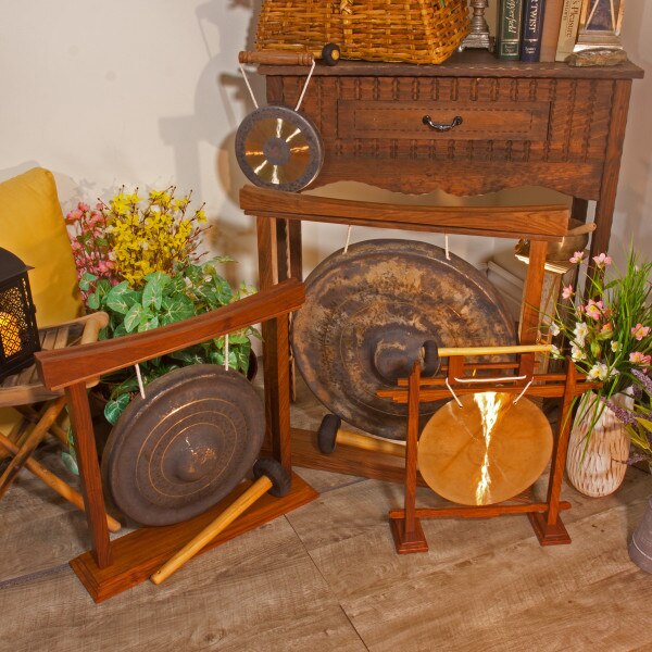 The Chao Gong is a very elegant and distinctive gong that produces a full and sustained wash of musical overtones. Its beauty and its traditional appearance make it a centerpiece in any space, indoors or outdoors. This style of gong dates from the Han Dynasty where it was used for spiritual drumming, large meetings, and to announce the procession of important people. In more modern times, the chao gong has found a place in different genres of music, most notably symphony orchestras.