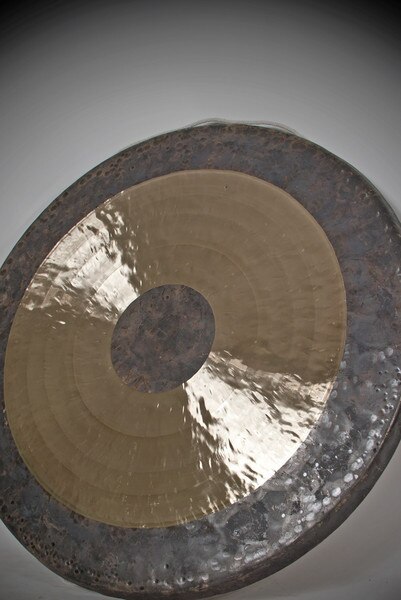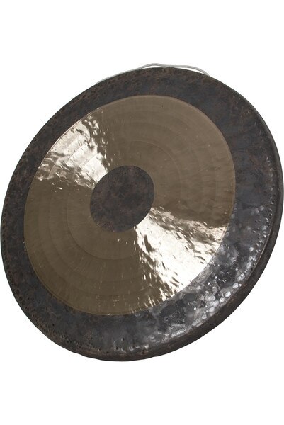 The Chao Gong, otherwise known as a tam-tam, is one of the most familiar looking Chinese gongs. The chao gong differs in shape from the wind gong in that it has a rim around the outside edge. It also has a very distinctive "target" appearance. It is made of a bronze alloy which is roughly 80% copper and 20% tin, and the crafting process is a mixture of hand hammering and working the bronze on a lathe while carefully heating and cooling the metal. On the chao gong, the center spot and outside rim retain the black copper oxide that forms when the gong is made. On the rest of the gong this coating is removed and the surface is polished. Chao gongs are available in a range of sizes, with each size having its own distinct full sound. Smaller sizes have a rich but higher sound while the larger sizes are deeper and ring with more power and sustain.
