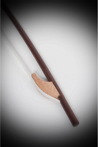 Rebec Bow (Item Code: REBR-BW) Synthetic hairs on a 26 inch long wooden stick. A simple wooden frog and unadorned grip. Wood color may vary. Rosin sold separately.