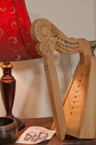 8 string Parisian Harp. This is a functional harp, but is designed to be decorative.