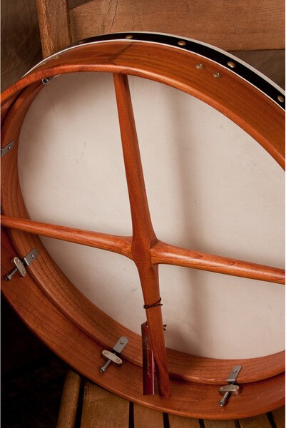 18 x 3.5 inch red cedar bodhran with inside tuning and two cross bars. Additional processing for a baby soft/smoother playing surface. Bolt tuning is hidden on the inside of the frame. Includes a tipper and a tuning wrench.